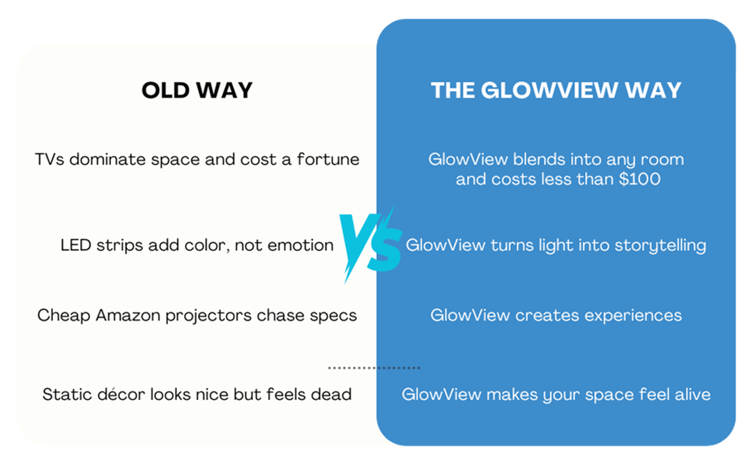 GlowView™ isn’t another mini projector pretending to be a home theater.