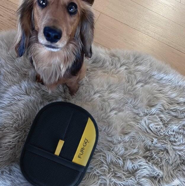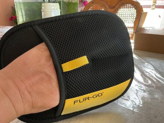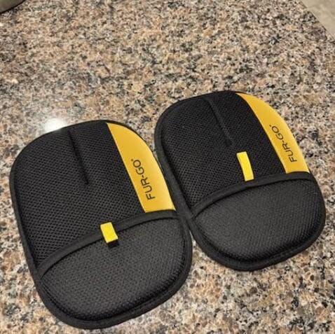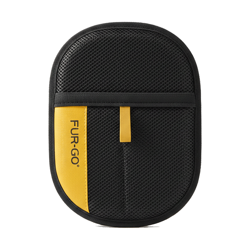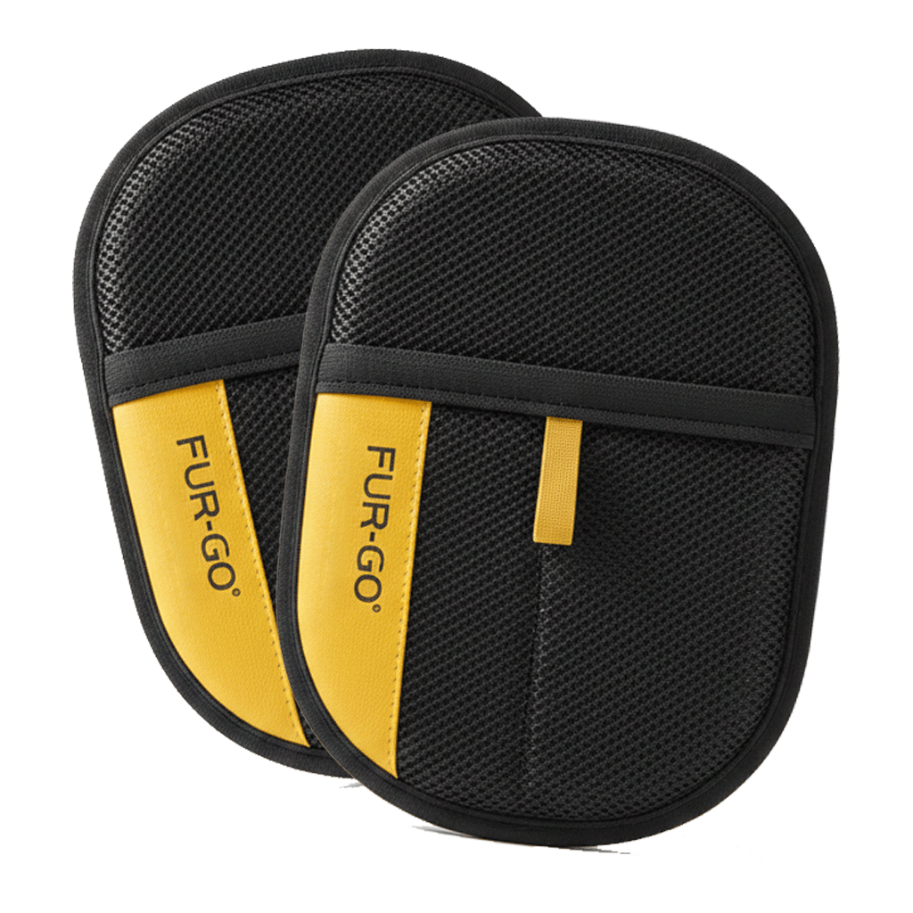 Slip the Fur Go Glove on your hand. Swipe it across your couch. The mesh creates static—fur lifts off the fabric and clings to the glove. Two passes and you're holding a clump of hair in your palm. Pull it off, toss it.